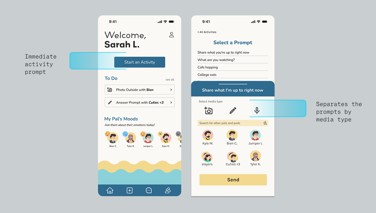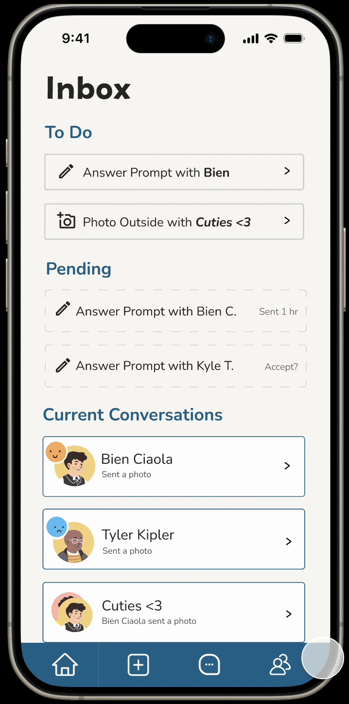 My Pod helps long-distance friends stay connected, no matter where they are. It provides fun, personalized prompts for sharing photos, texts, and voice messages, encouraging deeper conversations.