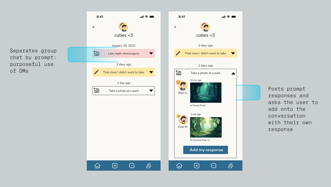 Prompts are personalized and chosen by individuals rather than universal, giving users agency in their friendship journeys.